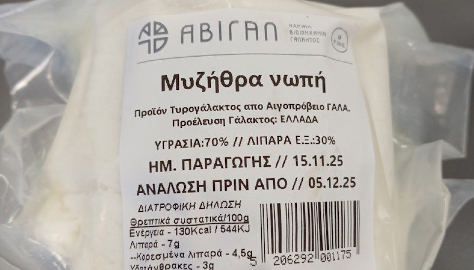 Ο Ε.Φ.Ε.Τ. και ειδικότερα η Περιφερειακή Διεύθυνση Δυτικής Ελλάδας, στο πλαίσιο του Προγράμματος «Επίσημος Έλεγχος για την Παρακολούθηση Μικροβιολογικών Κριτηρίων Ασφάλειας Τροφίμων», προέβη σε δειγματοληψία τροφίμου με τα στοιχεία: “Μυζήθρα Νωπή-ΑΒΙΓΑΛ” με ημερομηνία παραγωγής 15/11/25, ημερομηνία ανάλωσης έως τις 05/12/25, συσκευασίας καθαρού βάρους 400g, το οποίο παράγεται και συσκευάζεται στην Ελλάδα από την Α.ΒΙ.ΓΑΛ Α.Ε.-ΑΧΑΪΚΗ ΒΙΟΜΗΧΑΝΙΑ ΓΑΛΑΚΤΟΣ-ΕΜΠΟΡΙΑ ΕΙΔΩΝ ΣΟΥΠΕΡ ΜΑΡΚΕΤ-ΑΦΟΙ ΑΘ. ΠΑΝΤΕΛΗ & ΣΙΑ ΑΕ. Το προϊόν εξετάστηκε από το Τμήμα Υγιεινής Τροφίμων, της Δ/νσης Κτηνιατρικού Κέντρου Αθηνών του ΥΠΑΑΤ, όπου διαπιστώθηκε η παρουσία Σταφυλοκοκκικών Εντεροτοξινών τύπου SEA έως SEE.